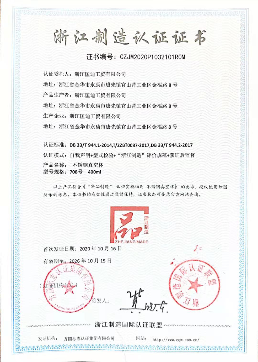浙江制造認(rèn)證證書