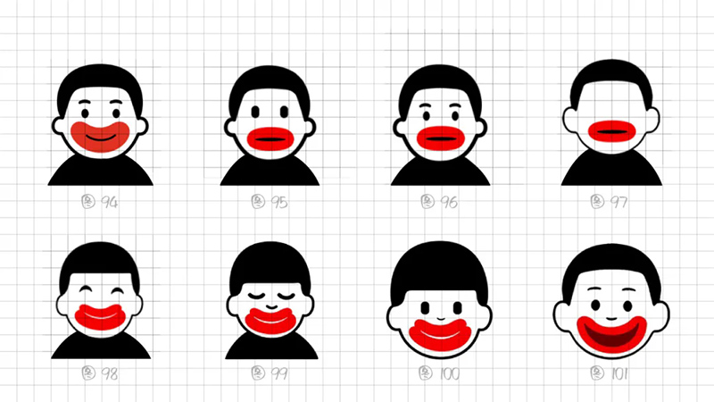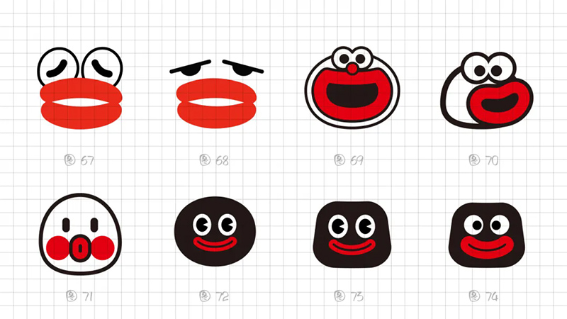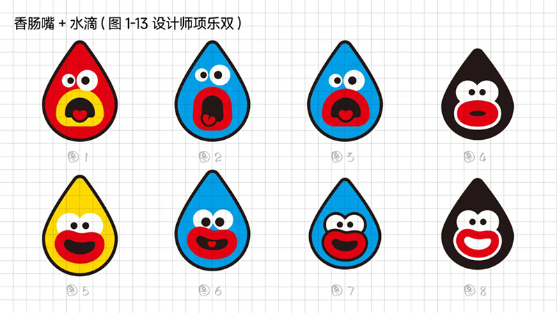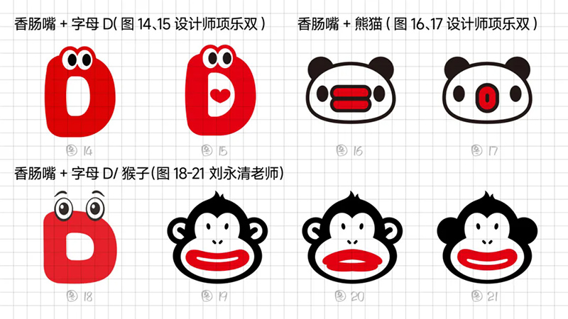 一開始使用最常規的多符號相加的符號創作套路,即“香腸嘴+熊貓”“香腸嘴+水滴”“香腸嘴+猴子”“香腸嘴+字母D”。