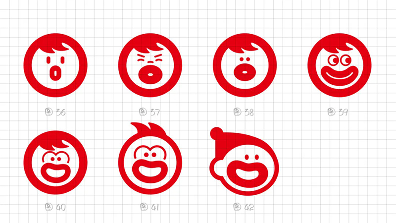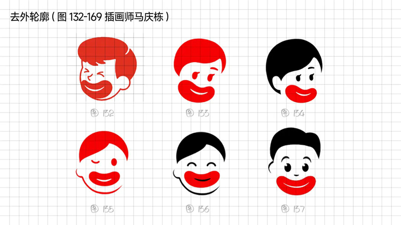 我們再把方案匯總周一上會,華板一眼就選中,后來經過細微的調整,項目小組長周云鳳說面部表現還可以做減法,去掉鼻子,加強突出香腸嘴,一眼瞟過去就能夠識別到香腸嘴。