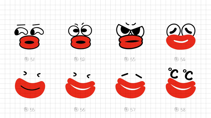 為了這種單一的信號,又繼續做調整,打算通過夸張嘴巴的方式,來凸顯“燙”的感覺。過程如下: