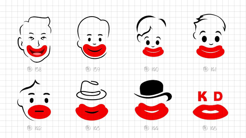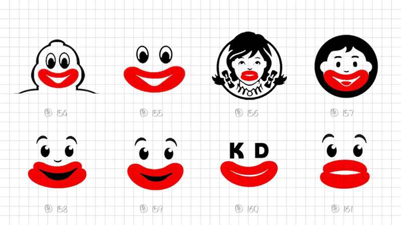 從識別角度出發,我們最終鎖定還是采用2片式結構、3個幾何橢圓、絕對對稱的圖形能高度概括燙嘴的表現特點。在細節上調整圖形,下唇更厚、下唇更寬。